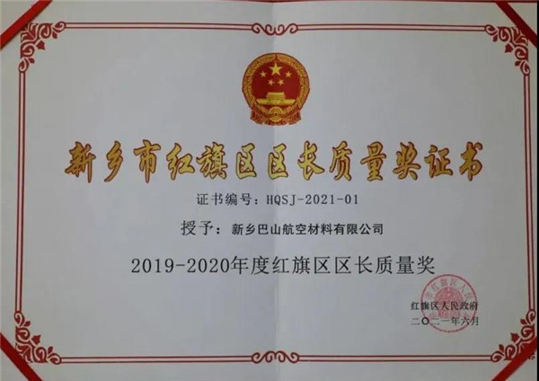 喜報(bào)丨巴山公司喜獲新鄉(xiāng)市紅旗區(qū)區(qū)長(zhǎng)質(zhì)量獎(jiǎng)